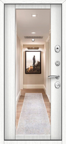 Сдержанный дизайн и продуманная функциональность делают эту модель универсальным решением для дома или офиса. Прочная конструкция на основе профильных труб и стального листа толщиной 2 мм выдерживает серьезные нагрузки и гарантирует надежную защиту. Два контура уплотнителей вместе с резиновым герметиком создают дополнительный барьер для холода и шума, а наличие терморазрыва в коробке и полотне исключает промерзание даже в сильные морозы. Белая входная дверь с зеркалом №74 смотрится особенно эффектно: светлый тон порошковой окраски придает ей аккуратность и визуальную легкость, а встроенное зеркало делает прихожую просторнее и функциональнее. Внутренняя отделка плитой МДФ подчеркивает уют и гармонично вписывается в интерьер. Для безопасности установлены два замка российского производства с надежной ригельной системой, при этом есть возможность заменить их на более современные варианты или дополнить изделие электронным оборудованием и декоративными элементами. Белая входная дверь с зеркалом №74 от производителя: быстрое изготовление и монтаж в Балашихе, индивидуальные размеры, широкий выбор материалов и фурнитуры, официальная гарантия до 10 лет.